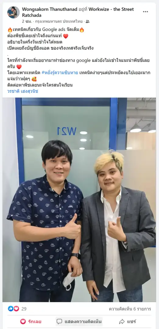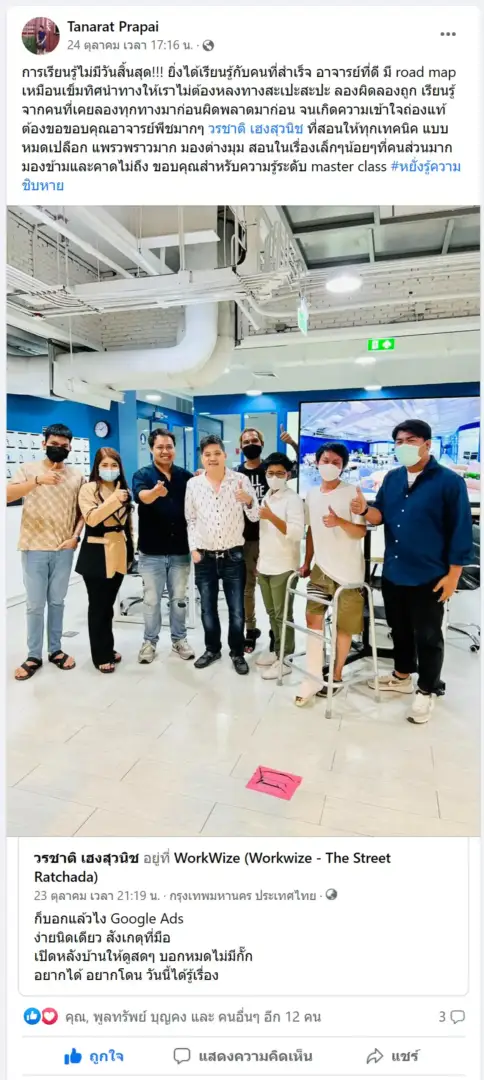 - สอนสดเจอตัว ที่ เดอะ สตรีท รัชดา Workwize Co-Working Space หรือ สอนสดออนไลน์ตัวต่อตัวทาง Zoom