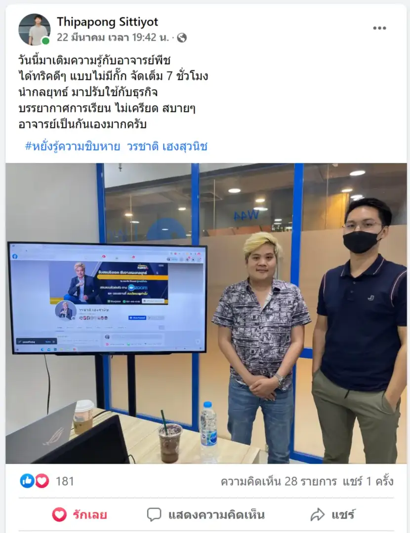 ครูพีช และ ทีมงาน สอนจากประสบการณ์ การทำธุรกิจออนไลน์ โดยตรง (ทุกหลักสูตร สอนแบบตัวต่อตัวเท่านั้น)